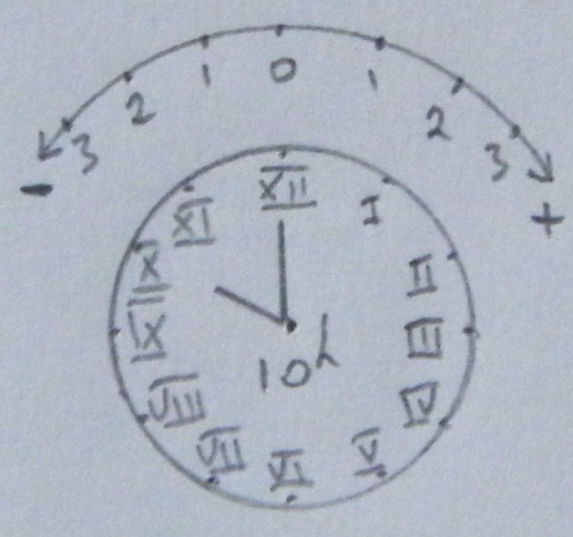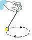First pratice with an imaginary pendulum; walk slowly, to and fro for at least ten minutes, the hand and arm supple as if holding a pendulum. Now while maintaining the correct position of your hand, imagine that you're holding an invisible small spoon and that you are gently stirring an invisible lump of sugar in an equally invisible cup full of coffee. Stir 20 times in a clockwise direction Stir 20 times in an anticlockwise direction Then again imagine that you're holding a phantom pendulum and walk calmly to and fro, stay calm and supple. Now hold a real pendulum in your hand, in the correct position as described and slowly walk to and fro for a while, don't pay any attention to what the pendulum is doing, For this beginners exercise any small weight (5 to 10 grams) on a string (3 to 10 cm long) will serve as a pendulum Now you know how to hold the pendulum and have practiced loosening up your wrist, the next step is to get the pendulum to move correctly; hold it in the correct position and standing calmly, slowly turn the pendulum voluntarily in a clockwise motion, as you did for the phantom spoon. Keep to the movement of the needles of a clock as show in the drawing.