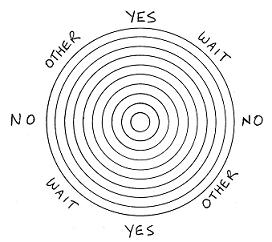 the ten concentric circles are size 1, 2, 3, 4, 5, 6, 7, 8, 9 and 10 cm in diameter, this graphic symbol serves not only to open your consciousness and perceive replies to simple questions but also as an amplifier. To use it formulate your questions in such a manner that there can only be a yes or no answer, for example "is the petrol tank of my car half full? three quarters full?" "will the next person that i see be male? female?", "what will be the dominant color of the next photo that i see in my magazine, red? blue? yellow?". Let your pendulum rotate freely above the graph and you will shortly feel that it pulls in a certain direction, that it seems attracted to "yes" or "no", it may oscillate between the two in which case you should reformulate the question, it can be great fun to play with :) Any question that you can think of is valid, it is important to verify the answer as quickly as possible this way you get feed-back and tune yourself into your subconscious. To start with most answers will probably be no better than guesswork but with practice you will get better and better, however here the accuracy of your results is immaterial, what is very important is that you are practicing to "feel" and perceive how your pendulum moves and reacts of it's own accord once it is completely free to do so. "It is within our competence to think and become bound or to cease thinking and thus become free" - Ramana Maharshi It's already been explained that movements of the pendulum are due to exterior influences and unconscious reflexes, so it's important to adopt a code of practice to interpret the movements of the pendulum. Practice proves that you can make with your pendulum, your unconscious, or more precisely with the global conscious matrix that extends beyond your individual consciousness any conventions, any mutual agreements that are necessary to obtain precise indications from your pendulum, Here's a suggested code of practice for interpreting the movements of your pendulum. There are four significant movements. 1) Oscillation of direction ; the pendulum pulls more in one direction than the opposite direction, indicating a particular direction, A simple oscillation without pulling shows neutrality. 2) Clockwise giration : indicates positive, good, correct. 3) Anticlockwise giration ; indicates negative, bad, incorrect. 4) The pendulum remains immobile and seems to be attracted to a point. An object, a living being, or energy leaves traces of where it has been, and there are traces at this particular point. When dowsing, measurements are largely the individuals unconscious, the conscious global matrix operating. Embedded within the vibrations of a particular thing are all the different characteristics of it; speed, weight, age, direction, etc ... all is inscribed within the vibrations in a global fashion, scientifically it's named modulation, For example: the alcohol content of wine is inscribed within the vibrations of the wine not in degrees, it's inscribed globally, the temperature of the wine is not in degrees centigrade nor fahrenheit but inscribed globally. A given weight doesn't vibrate in kilograms, a distance doesn't radiate in meters .. it's always the conscious matrix (Dr. Konstantin Korotkov is a leading scientific in this area) http://www.youtube.com/watch?v=XlkqEwH1PIE that's capable, by it's active, driving perception, to evaluate all these measures globally, and can establish a comparison with a standard that you propose. You want to translate a distance known by your unconscious into meters? The conscious matrix will translate it for you ... do this by voluntarily swinging your pendulum in a clockwise fashion and counting the number of turns until it stops ... one ... two ... three ... you now have the distance, three meters. 1