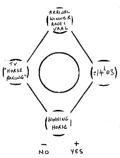each disk acts as a filter that you can consciously program so that you receive only the information that is essential to the case in hand. When you're away from home, in a hotel room for example, you can easily imagine yourself laying snug in your bed at home. You know it so well you can feel the blankets on you, scent the room, hear the familiar noises, see the color of the wallpaper, For an instant you've shifted your place of living to a different geographic location. Now, when sitting in your favourite chair in front of the tv you can easily imagine yourself watching your favourite program that will take place in a few minutes. you can hear the voices of the actors, you can see their faces, you have in effect shifted your place of living not geographically but into the future albeit a very near future. « imagination is not an empirical or superadded power of consciousness, it is the whole of consciousness as it realizes it's freedom » Jean-Paul Sartre Here is a practical example; Imagine that you wish to know the winner of the first horse race starting in 30 minutes time at 14.00hours, it's a flat race on a grass circuit 2000 meters, 10 horses running at Vaal horse race track, south africa and the race can be seen on direct "live" TV. Run a video of the race in your mind and you will find that the important "moment in time", the time at which to concentrate the image is the "time" at which the winning horse crosses the finishing line. Normally the time of arrival is 14.00 hours plus the time it takes for a racehorse to run 2000 meters (about 2 to 3 minutes). So you now can make a witness of the point in "time" that you are interested in by writing on a white card using a graphite pencil