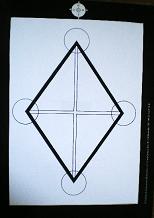 So now you have a perfectly balanced diagram at the center of which is an empty circle which represents your inner place of total abundance, the concept of abundance being defined as "the ability to perform " so it is your place of total ability. Ask any question and you will immediately get an answer through your instinctive reflex system. However always remember that it functions just like any computer, it cannot reason or evaluate, thought is polarized energy, it is either on or off, negative or positive, yes or no. All is vibration including humans, similar things vibrate in unison, link and resonate together as a vibrational match. When you think you enter into vibrational match with what you are thinking about. Humans are not conscious of this link, but as a result the body produces almost immediate involuntary reflexes. In the case of searching for the winning number of a horse race, asking the question "what is the winning number?" is imprecise. You should ask the question so that there can only be a yes or no answer. With your attention focused on the center of the graph ask "is horse number 1 the winner of this race" The flow of energy within the graph follows exactly the same principles as in feng shui, by modifying the graph you can modify the direction of the flow. The lozenge shape is always in perfect equilibrium, however by placing a question in the center you have put it under pressure, you have pressurized the assembly into giving an answer. Remember there is constant interaction between your energy and the graphism because it is in your focus and the graphism acts as a relay between the visible and the invisible, a kind of double doorway that allows you to interact directly with the invisible. Energy always follows the path of least resistance so you can now give it two equal choices through which the energy can escape and express itself and these two equal choices are