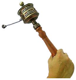 the verbal formula is maintained within the wheel that is held vertically and rotated while thinking of the essence of the words as being diffused all around. |