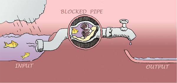 Okay, here's how it works as simply and clearly as I can explain it with my current level of understanding... For some reason, I've been using a lot of analogies about blocked pipes and water recently and I'm about to do it again :) ... Imagine a pipe that normally carries running water to some outlet...