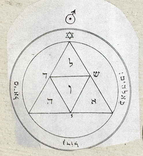 Ok here is my take on it - This is obviously the work of some freelancer as it mixes high magick and low in a way no lodge member or Wiccan would. A little bit Qabala, a little bit vodou, a little bit witchcraft. It seems to be a binding spell of some sort with the intent to do harm to those named. The glyph is Qabalistic in nature straight out of the Lesser Keys of Solomon. It's the Third Pentacle of Mars. (good for you, @ru bis) "It is of great value for exciting war, wrath, discord and hostility; also for resisting enemies and striking terror in resisting Spirits; the Names of God the All Powerful are there-in expressly marked." Letters of the names Eloah and Shaddai. In the center the letter Vau, the signature of the Qabalistic Microprosopus, the revealed face of God. I have a local friend who may want it. If not, I will burn it. Fire purifies. and I agree with purifying and burning the creepy fu****
