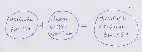and it's the modified original energy that most people perceive as being original energy Original energy can be represented by a bubble of colour blue, human intervention can be represented by a bubble of green and modified original energy can be represented by a bubble of red.